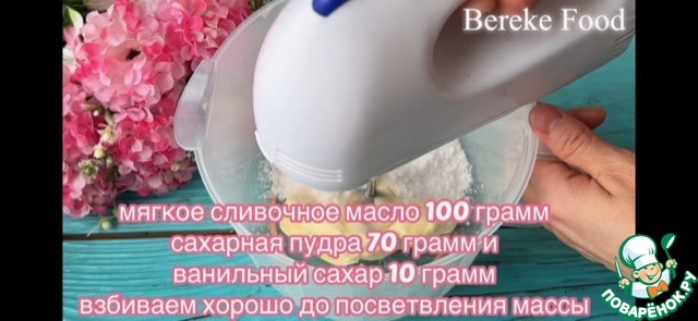 В размягченное сливочное масло кладем сахарную пудру, соль и хорошо взбиваем миксером на высоких оборотах 3-4 минуты.