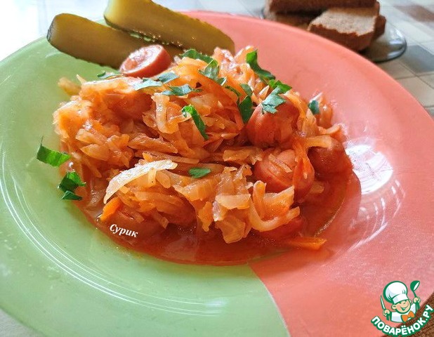 Рецепт «Тушеная капуста с сарделькой»: