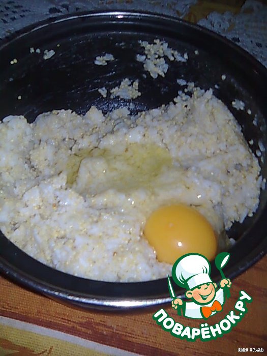 из крупы сварить вязкую кашу, добавить соль, сахар