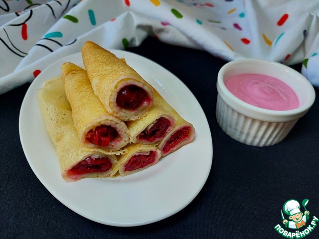 Рецепт «Блинчики с вишней "Теплая масленица"»: