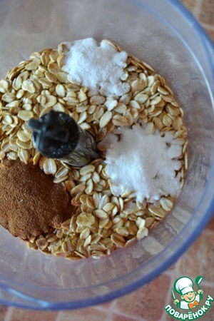 • Хлопья, соду, ванилин и 0,5 ч. л. корицы измельчить в блендере.