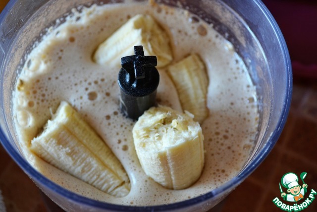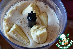 • Бананы разломить на кусочки и, постепенно добавляя в тесто, измельчить до однородности.