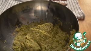 Измельчить кабачок с луком. По желанию можно добавить зубчик чеснока.