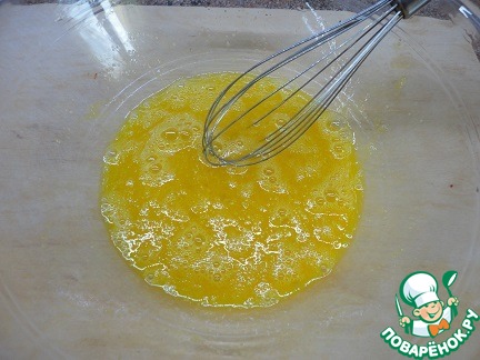 В глубокой миске с помощью венчика слегка взбить яйца с сахаром и солью.