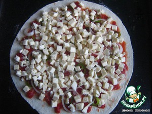 В духовочку её на высокий огонёк и, когда сыр подтает, а тесто снизу подрумянится, - ГОТОВО!!!!!