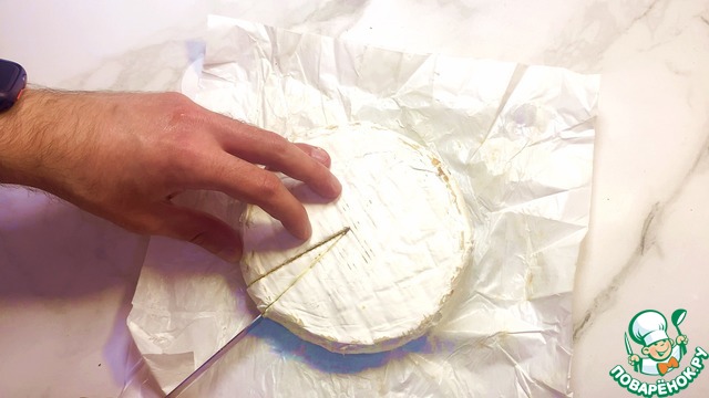 Сыр камамбер нарезаем достаточно большими кусочками.