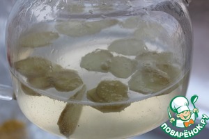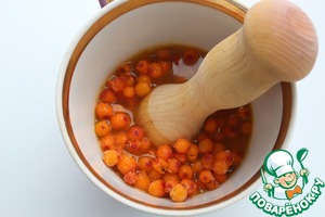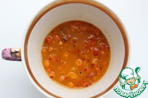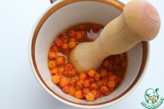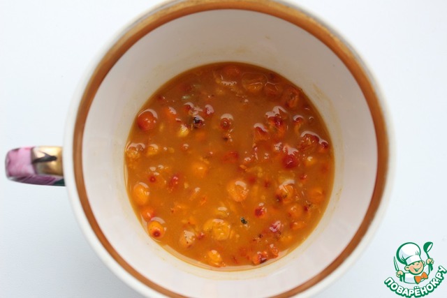 Влить кипяток так, чтобы он почти доходил до верха облепихи (не до края чаши!). -