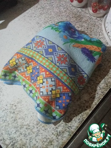 Далее завернула куски в 2 слоя фольги, накрыла двумя полотенцами и оставила до полного остывания.