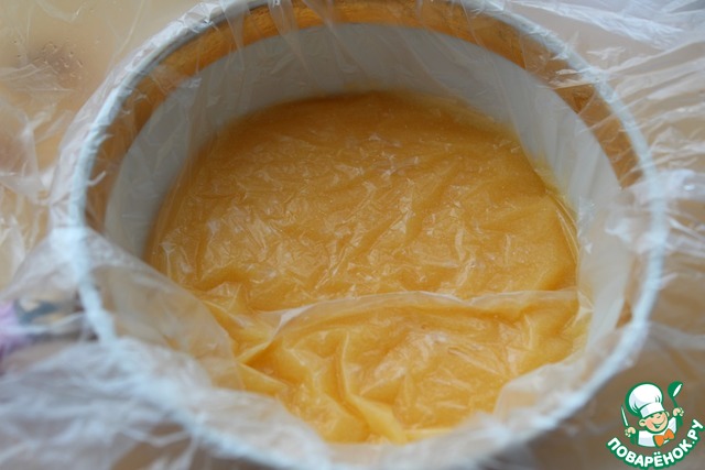 Вылить в форму, выложенную пленкой, и убрать в холодильник.