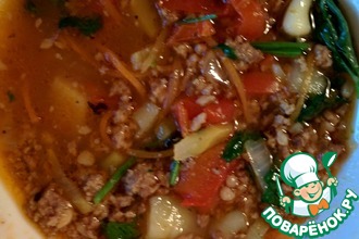 Подать горячим, при желании добавить зёрна граната.