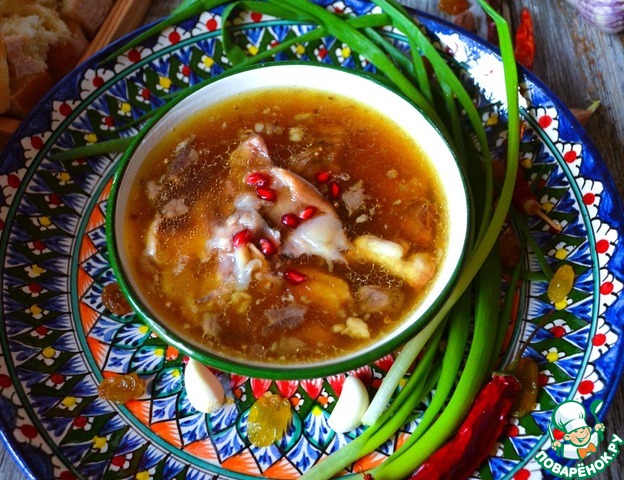 Это горячее блюдо, густой суп, хаш распространён по всему Кавказу и Закавказью. Конечно, в каждом районе готовят немного по разному, но основным ингредиентом являются говяжьи ноги, без них вряд ли получится настоящий хаш. Также используют бычьи хвосты, требуху. По особенным случаям варят хаш с языком м мясом говядины. Именно такой я и попыталась приготовить. Рекомендую.