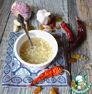 Для подачи приготовить чесночную заправку. Чеснок измельчить,