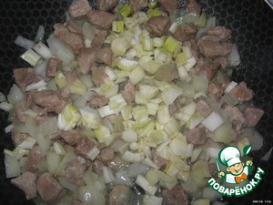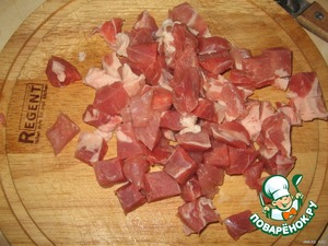 Свинину нарезать небольшими кубиками.
