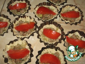 Помидоры нарезать на дольки и уложить сверху.