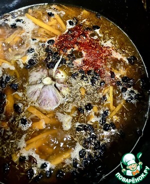 … то пришла пора загрузить в зирвак головку чеснока и, если надо то стручок перца в этот момент можно заложить. Мне не надо. А потом залил воду. Лично я всегда заливаю воду только вскипяченную, прямо из чайника.