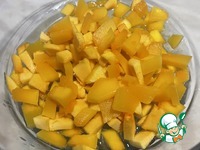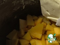 Начал с тыквы. Очистил от кожуры и порезал некрупно, так чтобы кусочки были удобными для употребления.