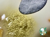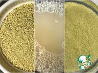 Пшено. Двести граммов. Очень хорошо промыть. До прозрачной, что называется воды. Крупа может быть разной. Мне «повезло». Хотя производитель и самый что ни на есть известный в России, но понадобилось «девять вод» для достижения нужного результат.