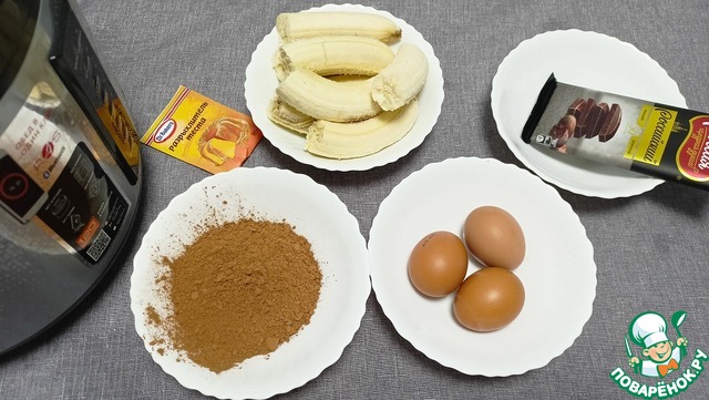 Перемешиваем миксером - банановую кашицу, какао-порошок, разрыхлитель и яйца 2-3 минуты.