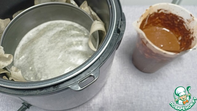 Либо смазываем чашу масло, либо укладываем бумагу для запекания - и отправляем в чашу наше тесто — Режим «Выпечка» 40 минут.