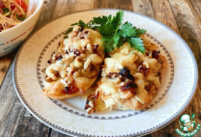 Ингредиенты для «Куриная грудка под шубой с грибами»: