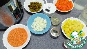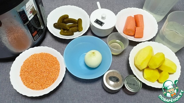 Ингредиенты для «Постный суп с чечевицей и огурцами»: