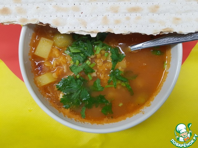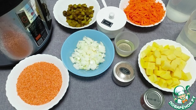 Рецепт «Постный суп с чечевицей и огурцами»: