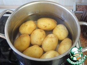 Молодой картофель помыть, но не чистить, отварить в воде с солью до готовности.