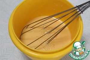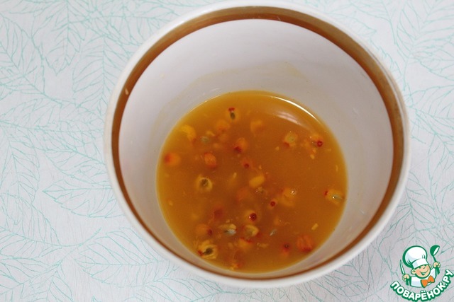 В чашу влить кокосовое молоко, облепиховый напиток, сахар, крахмал и очень тщательно перемешать.