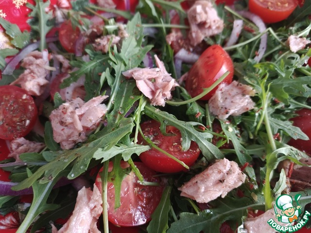 Рецепт «Лёгкий салат из рукколлы и тунца»: