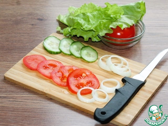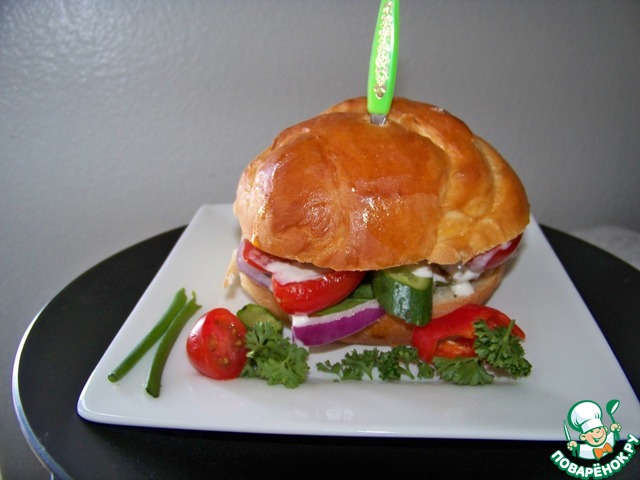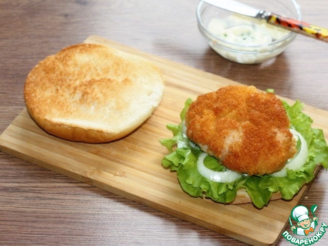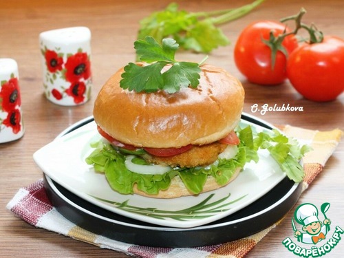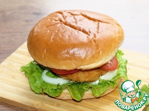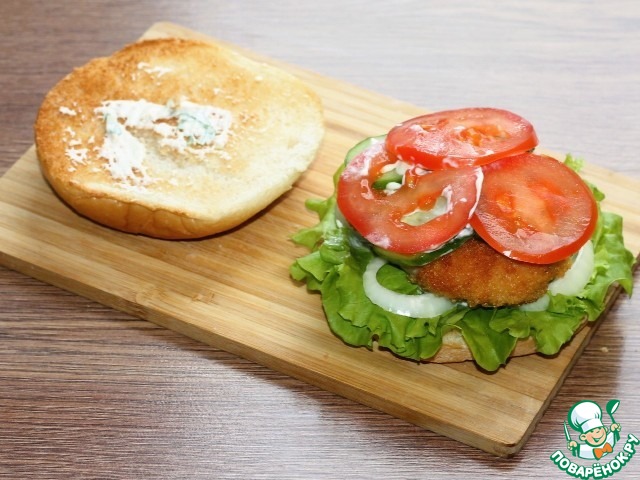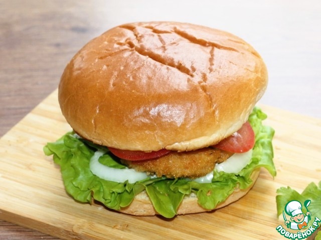 Рецепт «Бургер с куриной котлетой и овощами»: