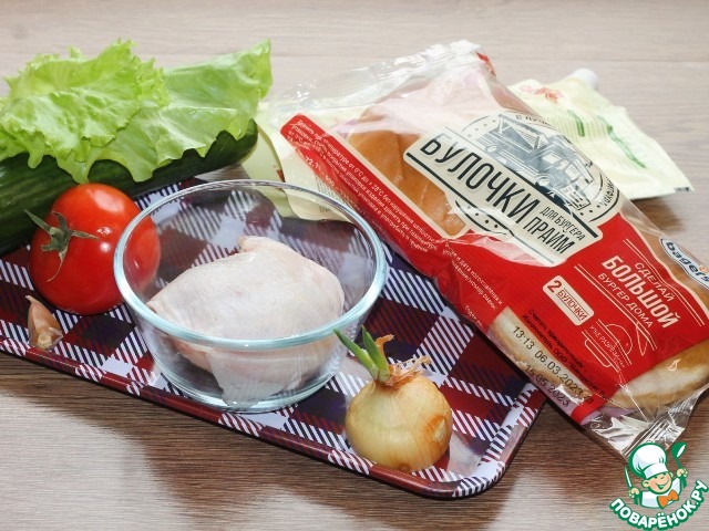 Ингредиенты для «Бургер с куриной котлетой и овощами»: