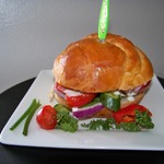 Бургер с куриной котлетой и овощами