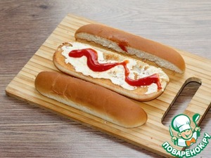 3. Промажем булочки небольшим количеством майонеза и кетчупа.