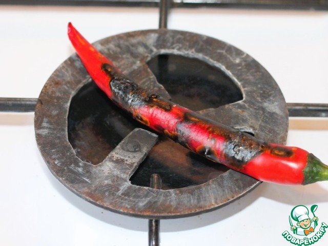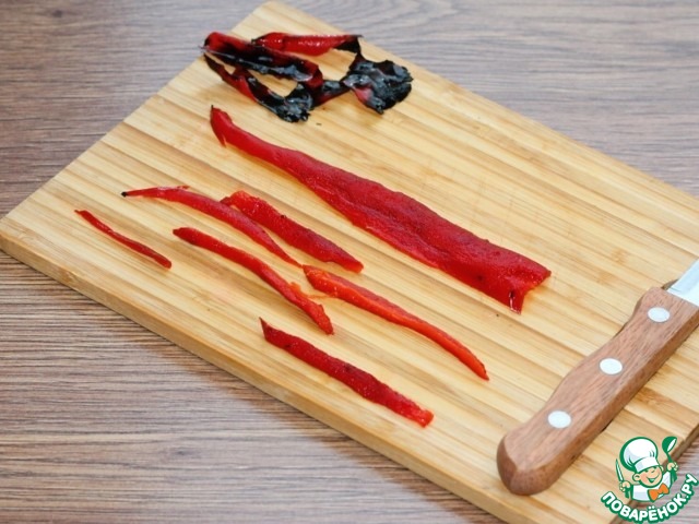 2. После тепловой обработки перец охладила, удалила шкурку и семечки, нарезала полосками.