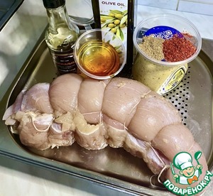 И погрузил в этот, назовем его «рассол», филе индюшки. Погружать надо так, чтобы мясо оказалось в рассоле полностью.