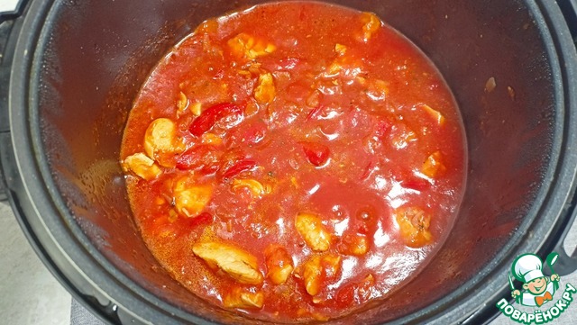Отправляем в чашу перетертые томаты - Режим "Тушение" 30 минут.