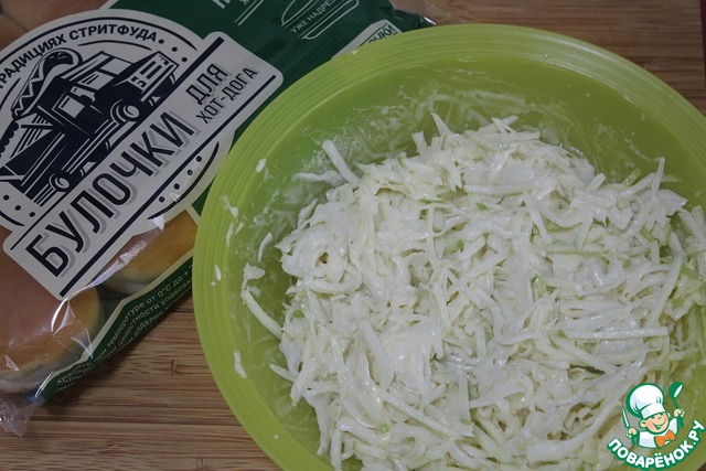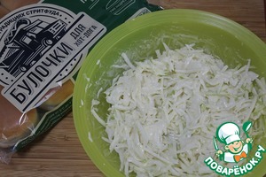 Выкладываем на обе половинки каждой булочки капустный салат.