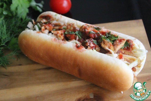 Часто использую в качестве начинки для булочек для хот-догов различные салаты и мясные или куриные блюда, а не только сосиски. Этот вариант в любимых - сочные, пикантные бедрышки, свежий, сливочный капустный салат с кисло-сладким яблоком и томатный пряный соус, а все это в нежнейшей булочке для хот-догов ТМ Bagerstat. А-ля шаурма в булочке! Булочка уже разрезана, так что остается только добавить начинку). Пробуем?