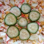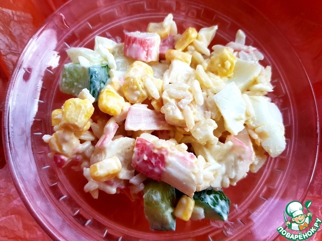 Я удивлена! Этого салата, можно сказать, нет на сайте, специально посмотрела, прежде чем делать. Есть похожие, но совсем не такие, в принципе. Скорее всего, все его давно знают и не считают нужным выставлять. А я вот рискну... Вдруг кому-нибудь пригодится. Вообще, у меня два салата срослись со временем в один. Раньше я делала два варианта крабового - один с рисом, а второй с огурцами. Оказалось, вкуснее всего всe вместе.