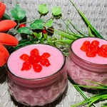 Здравствуйте! Очень лёгкий, воздушный, полезный десерт. Приготовить очень быстро, открыть банку компота, добавить манку и все готово!
