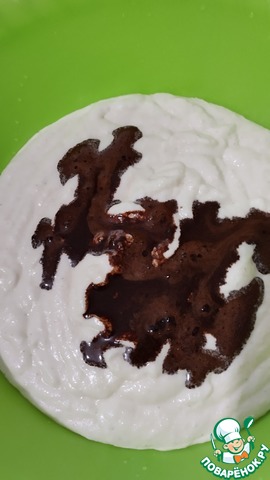Кофе и корицу заливаем 2-3 ложками горячей воды и мешаем до полного растворения кофе. Выливаем в тесто и опять хорошо мешаем.