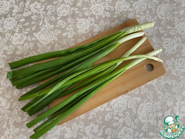 Перья зелёного лука крупно порежьте, положите в чашу блендера и добавьте оливковое масло. Взбейте до получения однородной массы. Количество лука добавляйте по-своему вкусу.