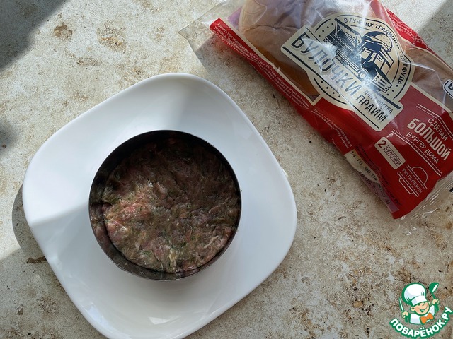 Рецепт «Бургер с котлетой и зеленым луком»: