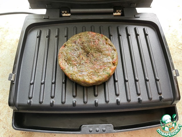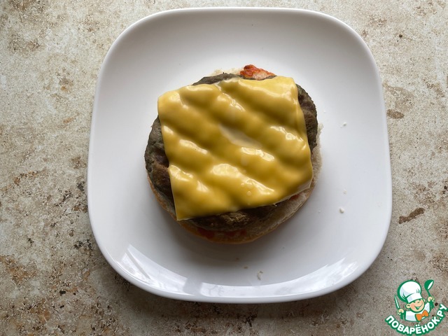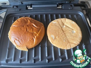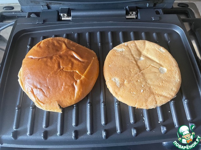 По желанию бургер можно положить на электрический гриль, накрыть крышкой и прогреть 1-2 минуты.