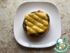 На горячую котлету выложите ломтик сыра, чтобы он расплавился.