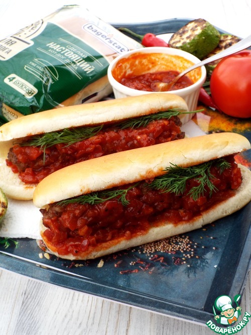 Рецепт «Хот-дог с люля-кебабом и томатным соусом»: