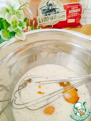 В миске соедините молоко, яйца, корицу, соль, ванильный сахар и мускатный орех.