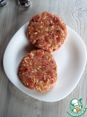 Фарш для котлет я сделала из красного мяса курицы на крупной решётке.