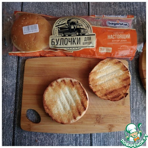 Я использую в рецепте булочки Bagerstat с кунжутом. Они уже разрезаны для бургеров.