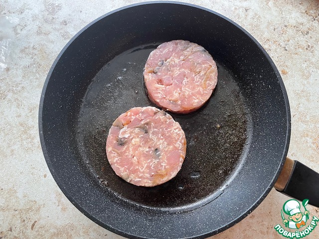 • Сформировать котлету удобным способом по размеру булочки, высотой 1,5-2 см.